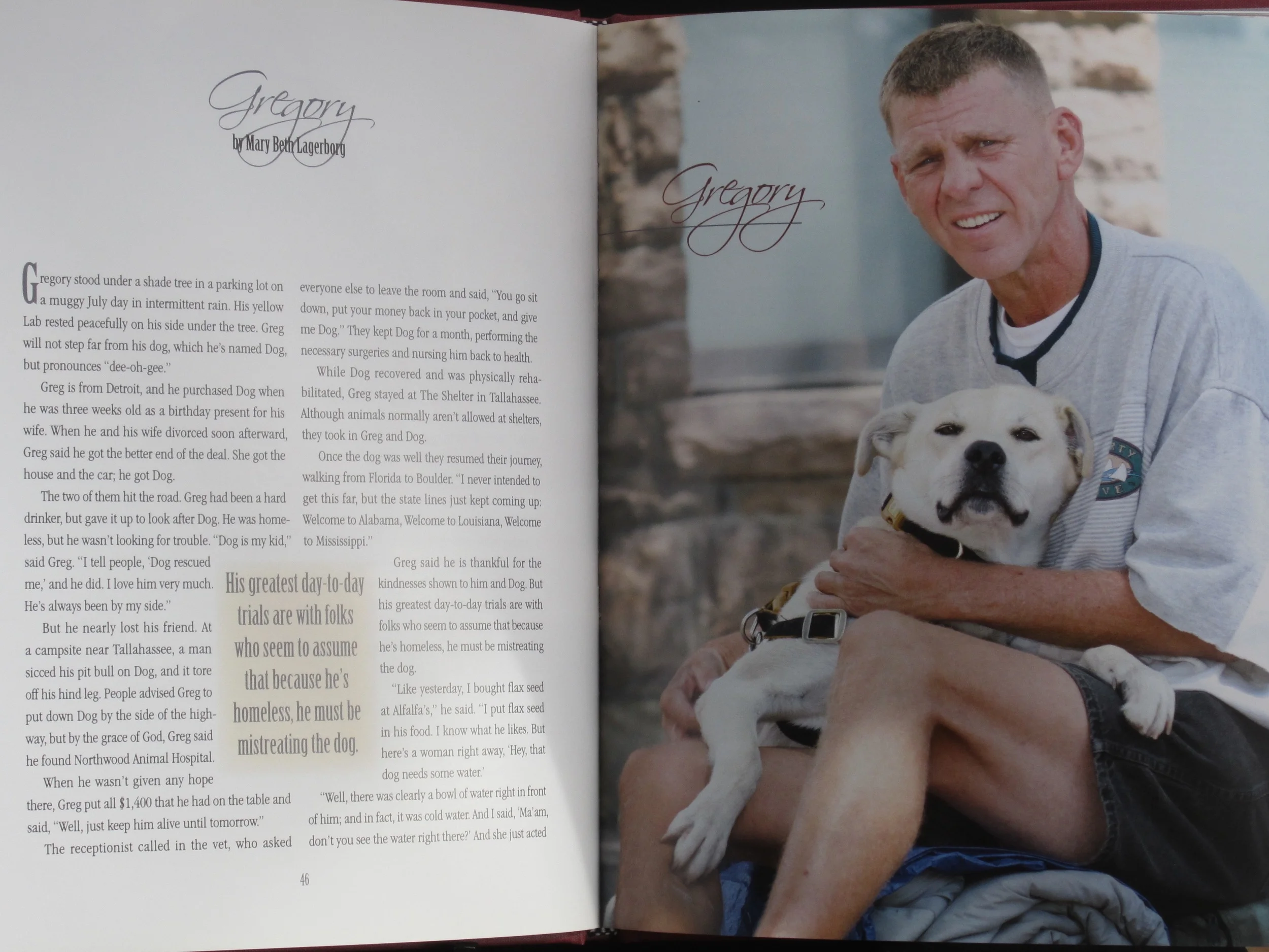 Gregory told me his story. When his marriage fell apart, his wife got the house and car, and Gregory got the better deal—the dog, whom he named “Dog,” pronounced “dee-oh-gee.” They hit the road. Greg had been a hard drinker, but gave it up to look after Dog. “I tell people, ‘Dog rescued me,’ and he did. I love him very much. He’s always been by my side.” The two of them walked from Florida to Colorado.